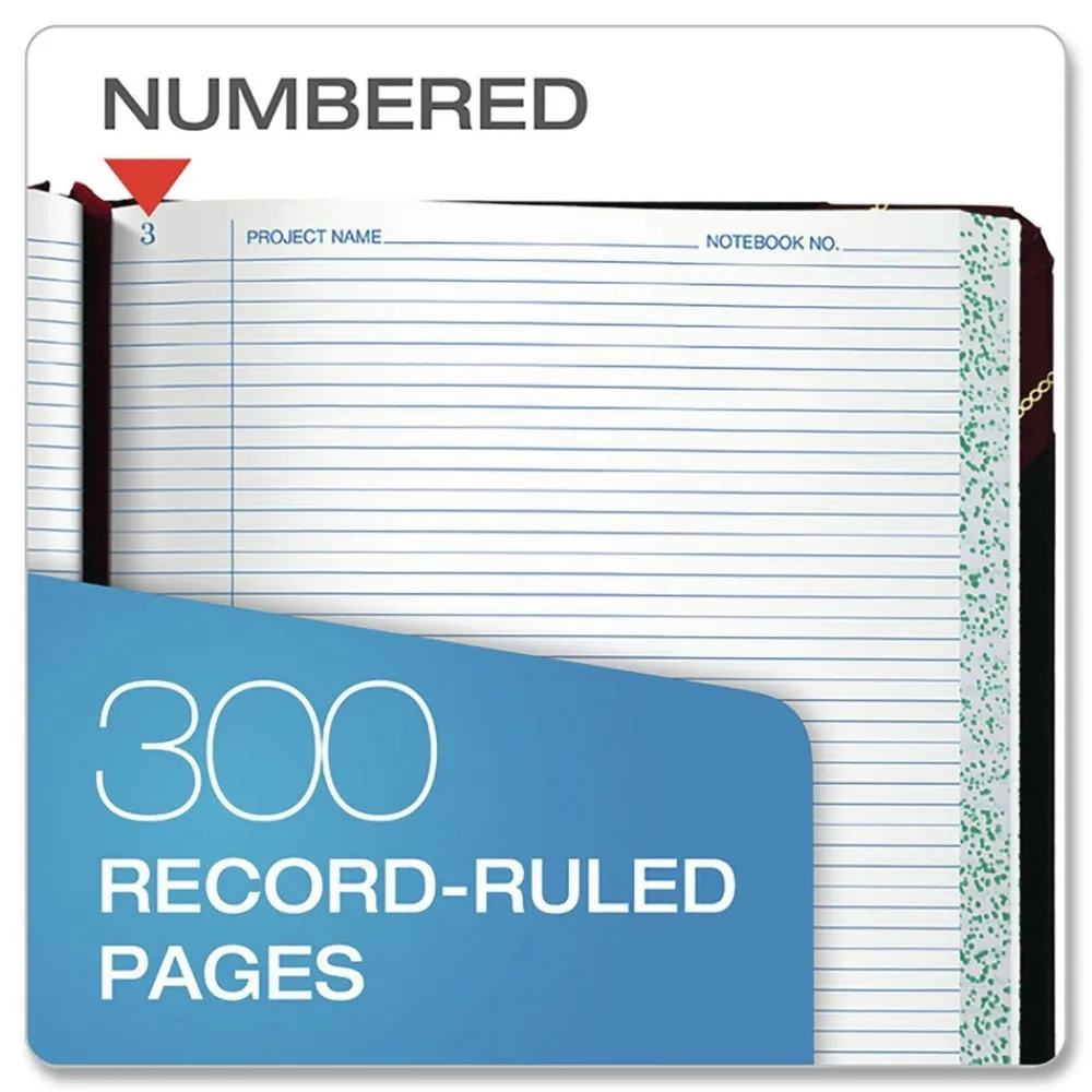 Boorum & Pease L21-300-R 10.38 x 8.13 Data/Lab-Record Format Laboratory Notebook – Black/Red Cover