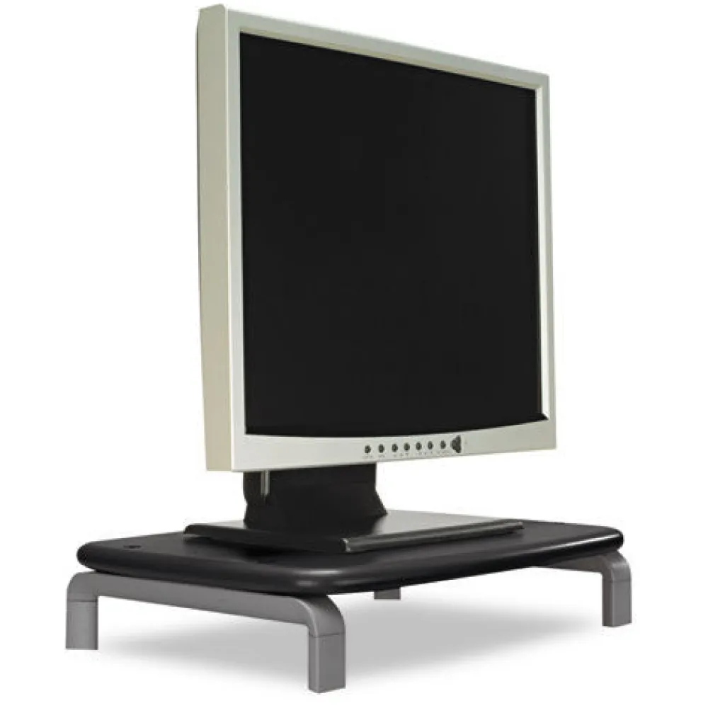Adjusts monitor height without tools to an optimal viewing angle, helping to reduce eye and neck strain and fatigue. Expands usable desk space by allowing storage underneath platform. Large platform supports any monitor up to 80 lbs. SmartFit SystemMeasure, Adjust, Fit. Workspace that works for you. Stylish construction and color complement any décor.