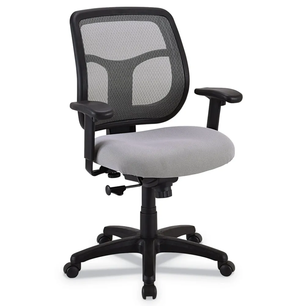 Eurotech MT9400SR 18.1 in. to 21.7 in. Seat Height Apollo Mid-Back Mesh Chair – Silver Seat, Silver Back, Black Base