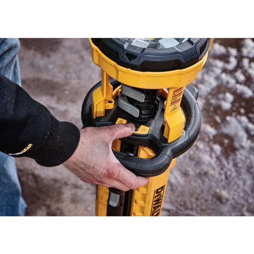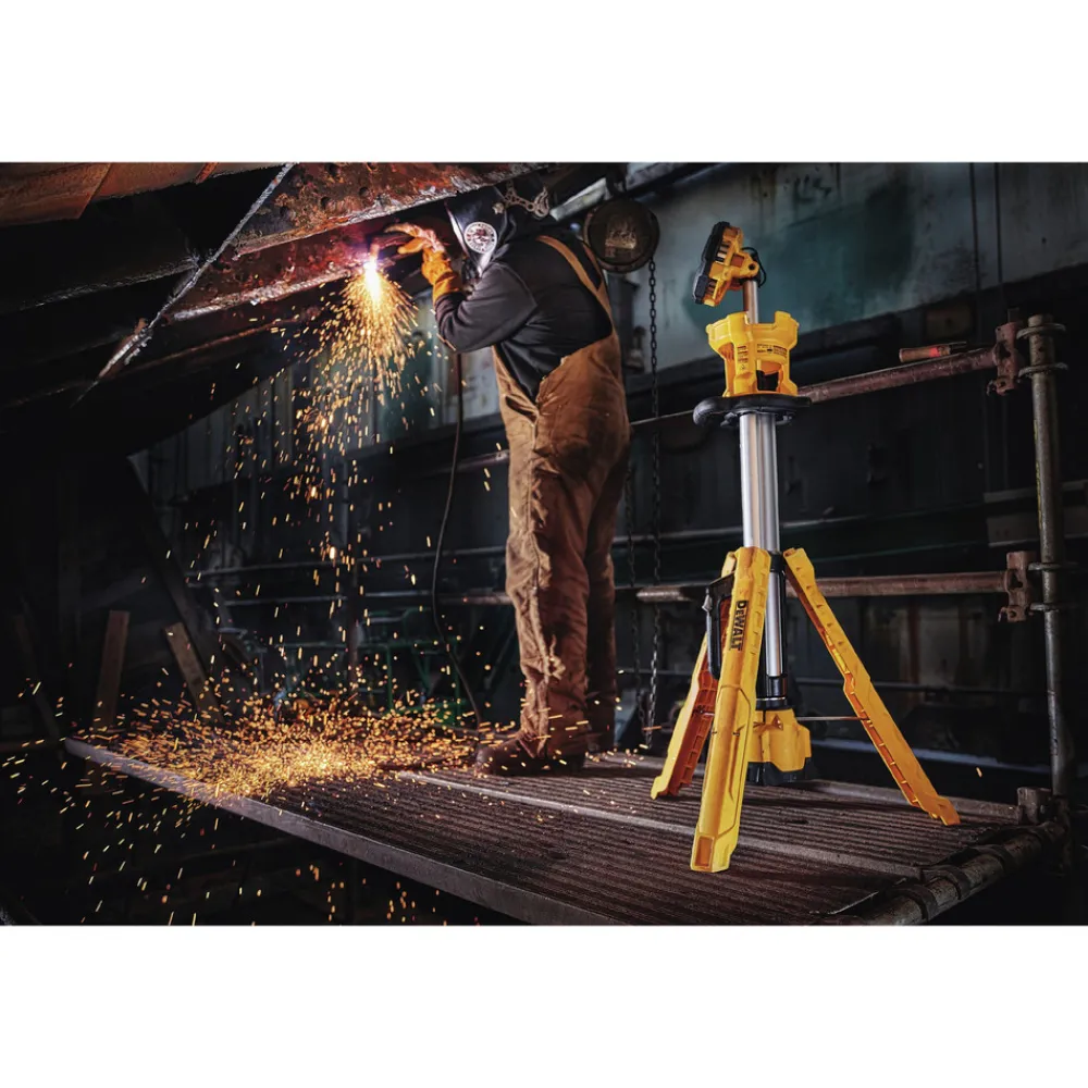 The DEWALT 20V MAX Cordless Tripod Light illuminates your workspace in the toughest jobsite conditions. It’s built for incredible durability in use, storage, or transport. Eliminate the hazardous heat of halogen. Cutting edge LED technology provides extended runtime and natural white light. Variable brightness settings up to 3000 lumens let you customize illumination for your work area. Compact design with carry handle provides easy portability, and it sets up in seconds. Rotating, pivoting head directs light where you need it. This package includes the light only.