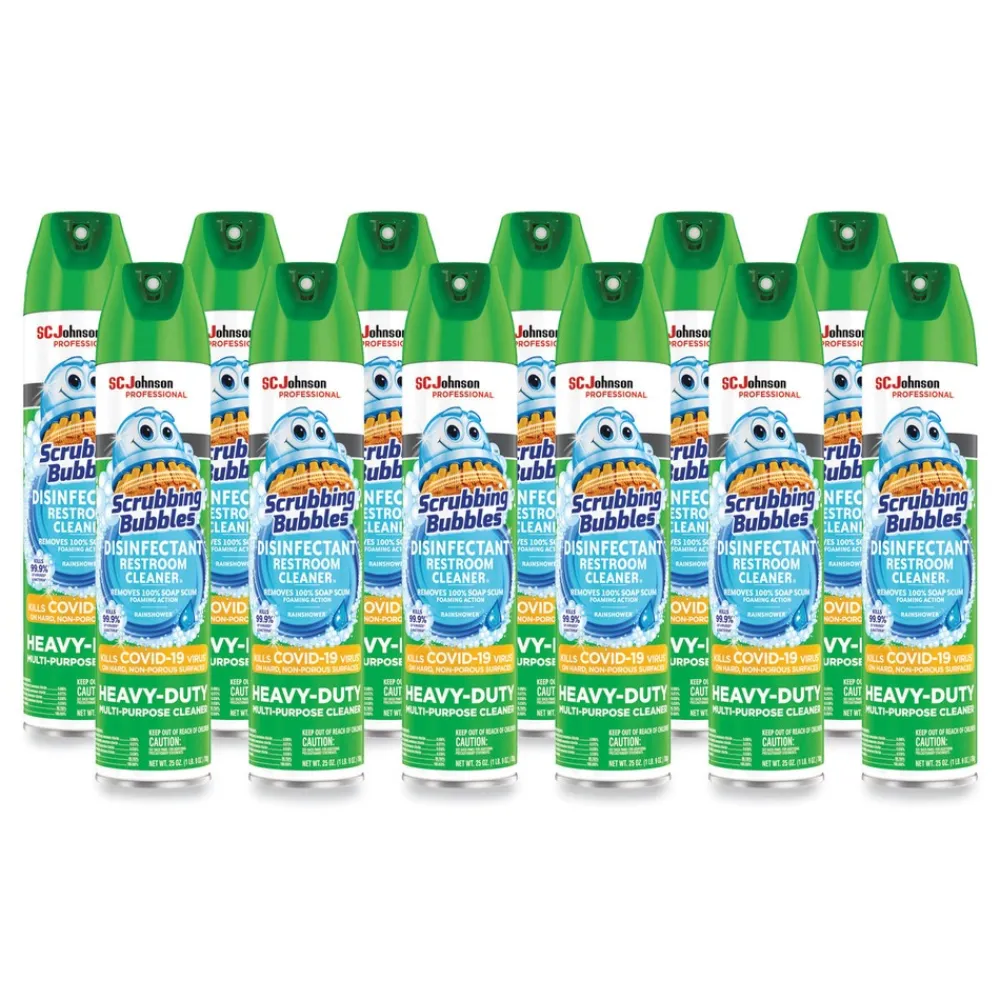 Scrubbing Bubbles 313358 25-Ounce Disinfectant Restroom Cleaner II Spray – Rain Shower Scent (12/Carton)