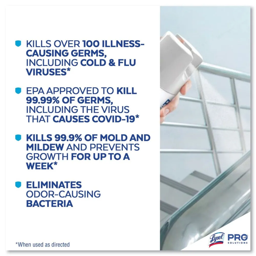 Boost customer confidence with Lysol Professional Disinfectant Spray that’s safe to use on hard and soft surfaces. Lysol kills 99.9% of viruses and bacteria, as well as cold and flu viruses when used as directed. Help protect high-traffic areas and high-touch surfaces, including desks, bathrooms, doorknobs, and railings. Deliver hospital-type disinfection into soft surfaces, including upholstery, curtains, sofas, mattresses, and cushions. Meet customer and staff expectations around disinfection. Simply spray and let air dry.