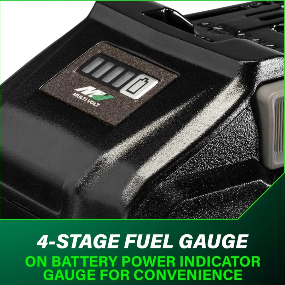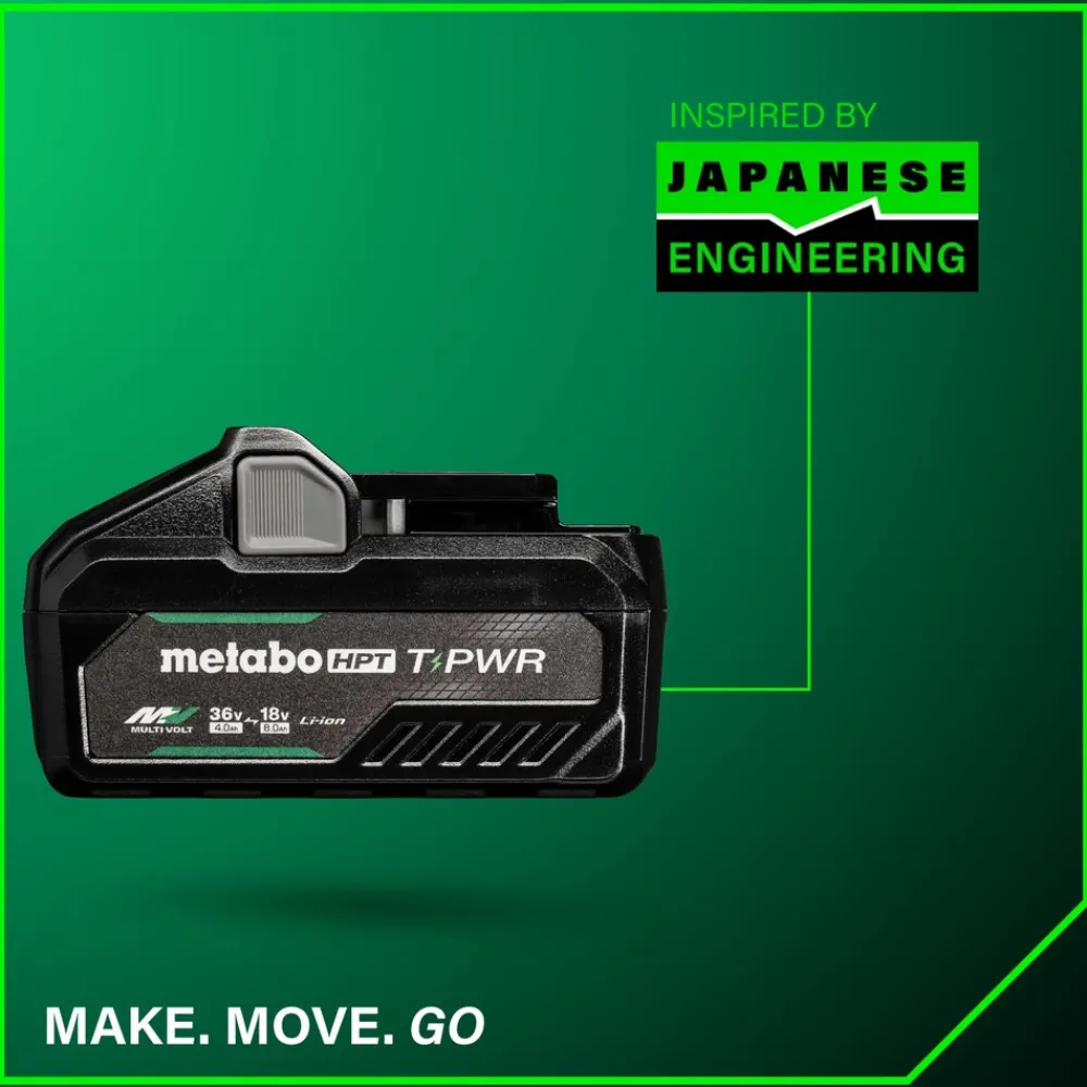 Experience the power of the Metabo HPT 36V/18V T-PWR MultiVolt Battery (381991M), utilizing the latest 21700 lithium-ion battery cell technology. This high performance battery design reduces internal resistance, allowing more power to flow to the tool, increasing both the overload capacity and tool speed. With a maximum output of 2160W, you can tackle heavy-duty applications effortlessly and efficiently. It offers longer runtimes and stays cooler, even during the most demanding tasks. When you charge the tabless battery with the UC36YSL2, you’ll have a fully charged battery in just 40 minutes. This versatile battery seamlessly powers your 36V and 18V Metabo HPT tools, making it perfect for a variety of tasks, whether light or heavy-duty. Plus, with a convenient 4-stage fuel gauge, you’ll always know how much power you have left. Weighing only 2.1 lbs and backed by a 2-year warranty for your peace of mind, you can trust that every Metabo HPT battery is built to the highest standards and rigorously tested for performance and durability. Get to it! MAKE. MOVE. GO.