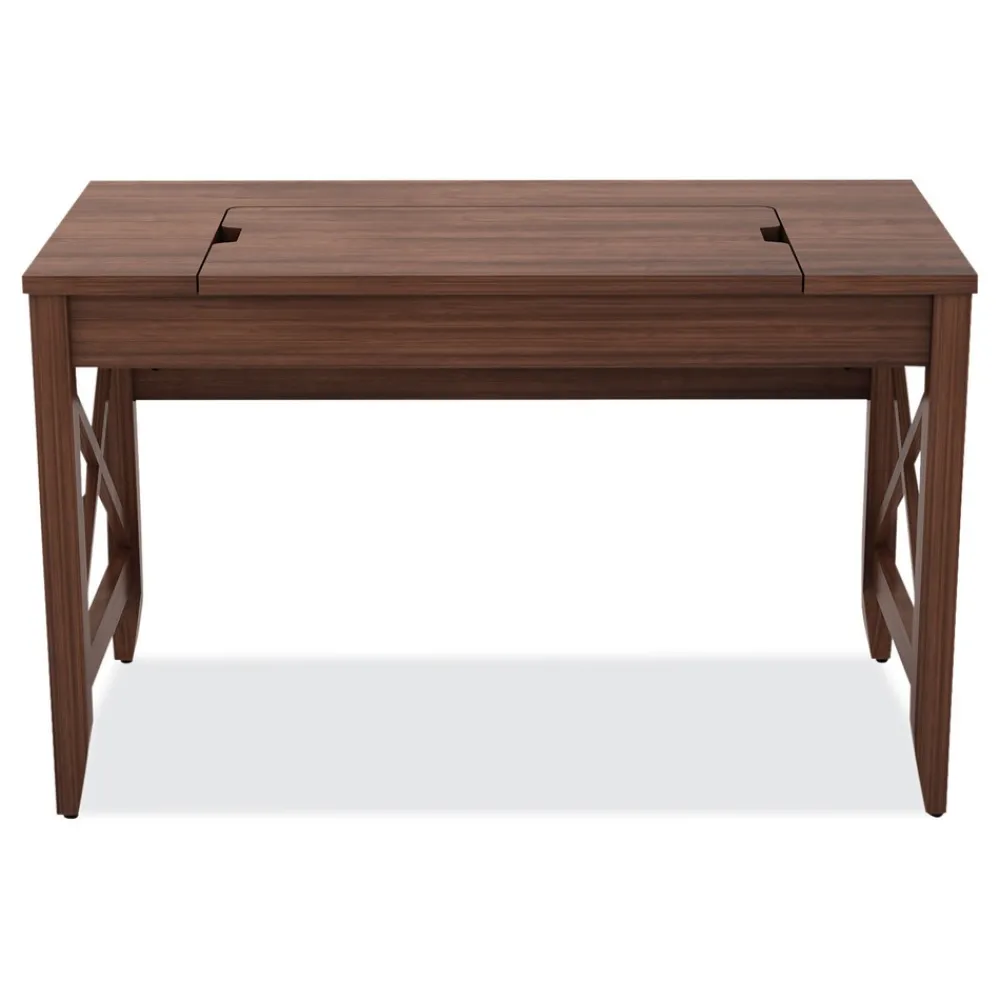 Sit-to-stand desk that functions as a standing or seated workspace with a built-in, height adjustable work surface. This versatile desk has everything you need and takes up minimal floor space. The lift portion of the desk surface has infinite height adjustability that can be locked in several positions within a 14 in. range. Easily transition between seated and standing positions with the mobile lift which is flush with top surface when lowered. Stylish tapered legs with leveling glides to adjust for uneven floors.