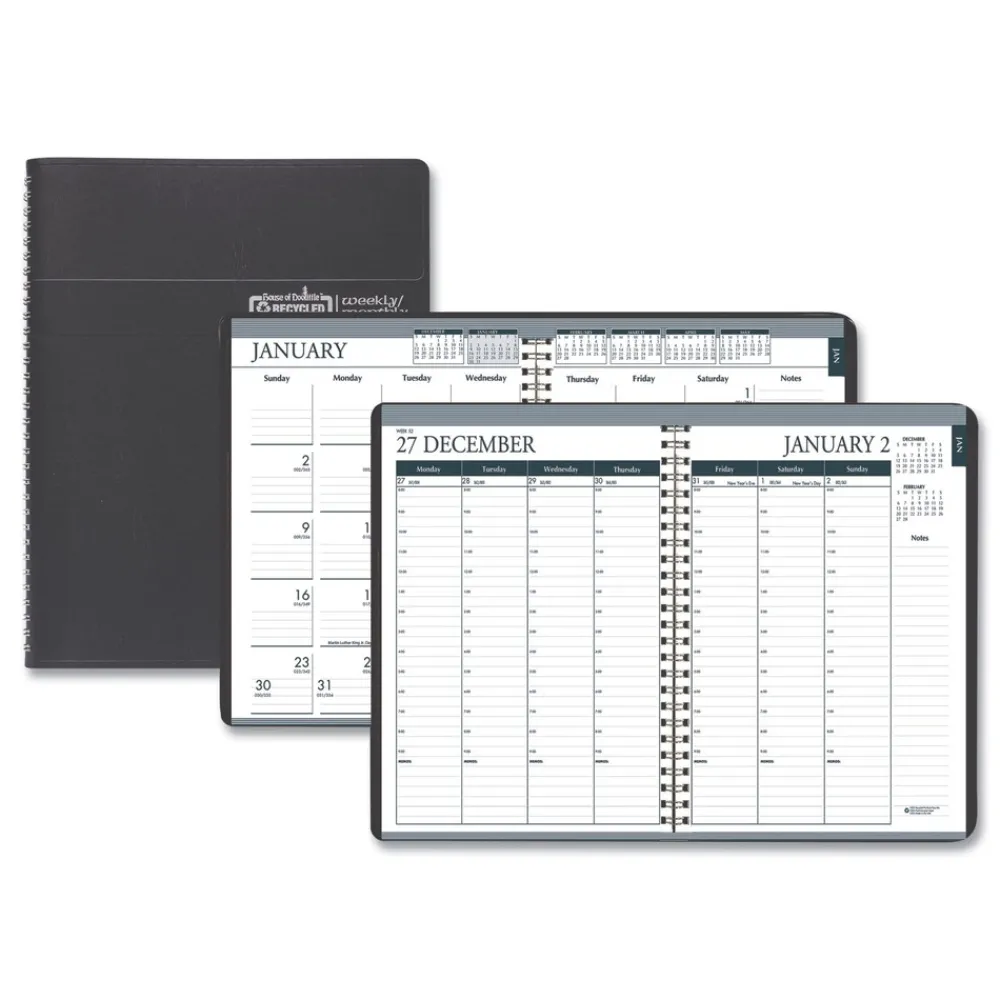 8.75 in. x 6.88 in. 12-Month (Jan-Dec 2026) Recycled 7-Day Planner – Black Cover – 286802