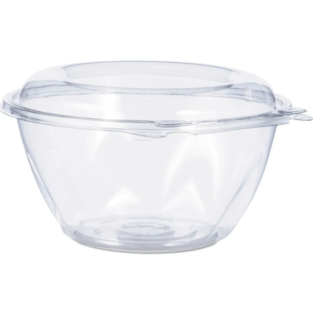 No matter what’s inside, these bowls keep your food safe, secure and looking good! Designed to prevent tampering without shrink bands or extra wrapping, SafeSeal bowls make sharing food easy. The complete perimeter seal preserves freshness and prevents leaks and spills. The tamper alert hinge has a visible seal that, if broken, makes it obvious the container has been opened. The specialty lid inhibits the ability to lift it from the base without tearing the hinge. Once the seal is broken, the now two-piece container is easy to re-close and continues to be leak-resistant. Make sure your food is the star of the show with this crystal-clear material. Merchandise and transport with confidence thanks to the stable stacking design.
