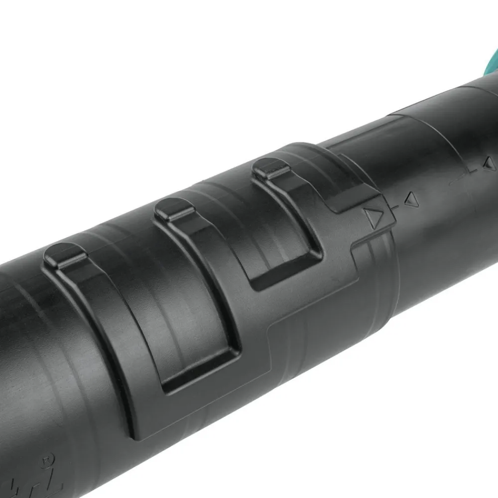 The blower features a variable speed trigger to adjust speeds between 0 – 476 CFM. A cruise control lever provides management of power and run time and a speed lock provides continuous operation. 3-stage telescoping long nozzle allows the user to adjust the nozzle of the blower to cover varying area ranges. The in-line fan design provides better tool balance and improved ergonomics.