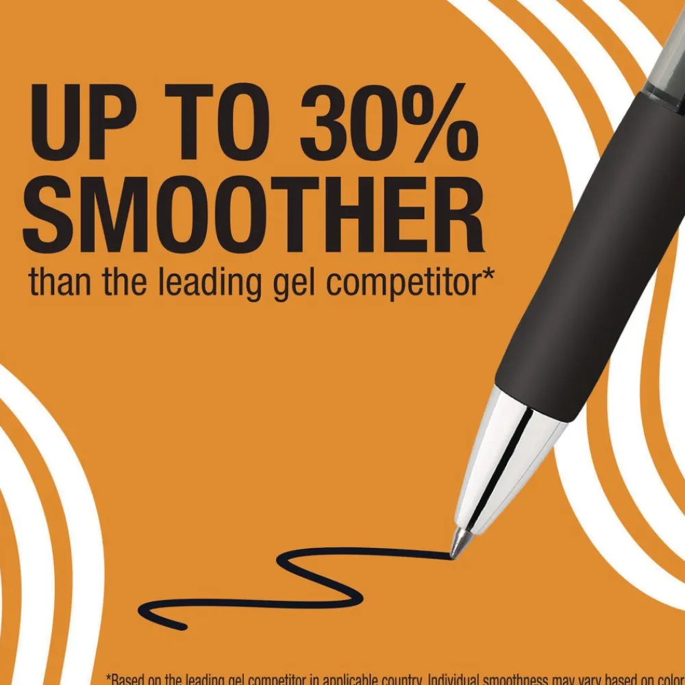 BIC Gelocity Pro Black Gel Pens are your go-to choice for everyday writing. With a 0.7 mm medium point, these pens deliver clear, smear-resistant lines, making them perfect for jotting down notes, making lists, or any other writing tasks. The ink flows easily, providing a super smooth writing experience that’s up to 30 percent smoother than the leading gel competitor. They’re also a smart choice for left-handed writers, thanks to their smear-resistant ink. The round barrel features an ultra comfortable grip, allowing for a controlled yet comfortable hold, perfect for those long writing sessions. For added convenience, these pens are retractable and come with a plastic clip for easy attachment to pockets and notebooks. Choose BIC Gelocity Pro Ink Gel Pens for a reliable, high-quality writing tool. Individual smoothness may vary based on color. Dries in as little as five seconds.