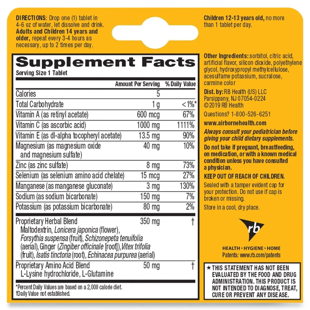 Airborne 47865-30004 Immune Support Effervescent Tablet – Zesty Orange (72/Carton)