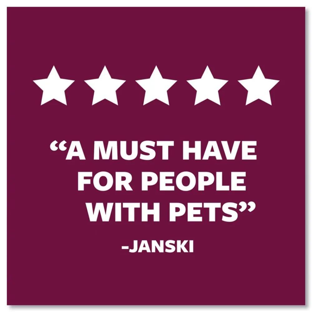 Picks up pet hair and lint without damaging clothes or fabrics.