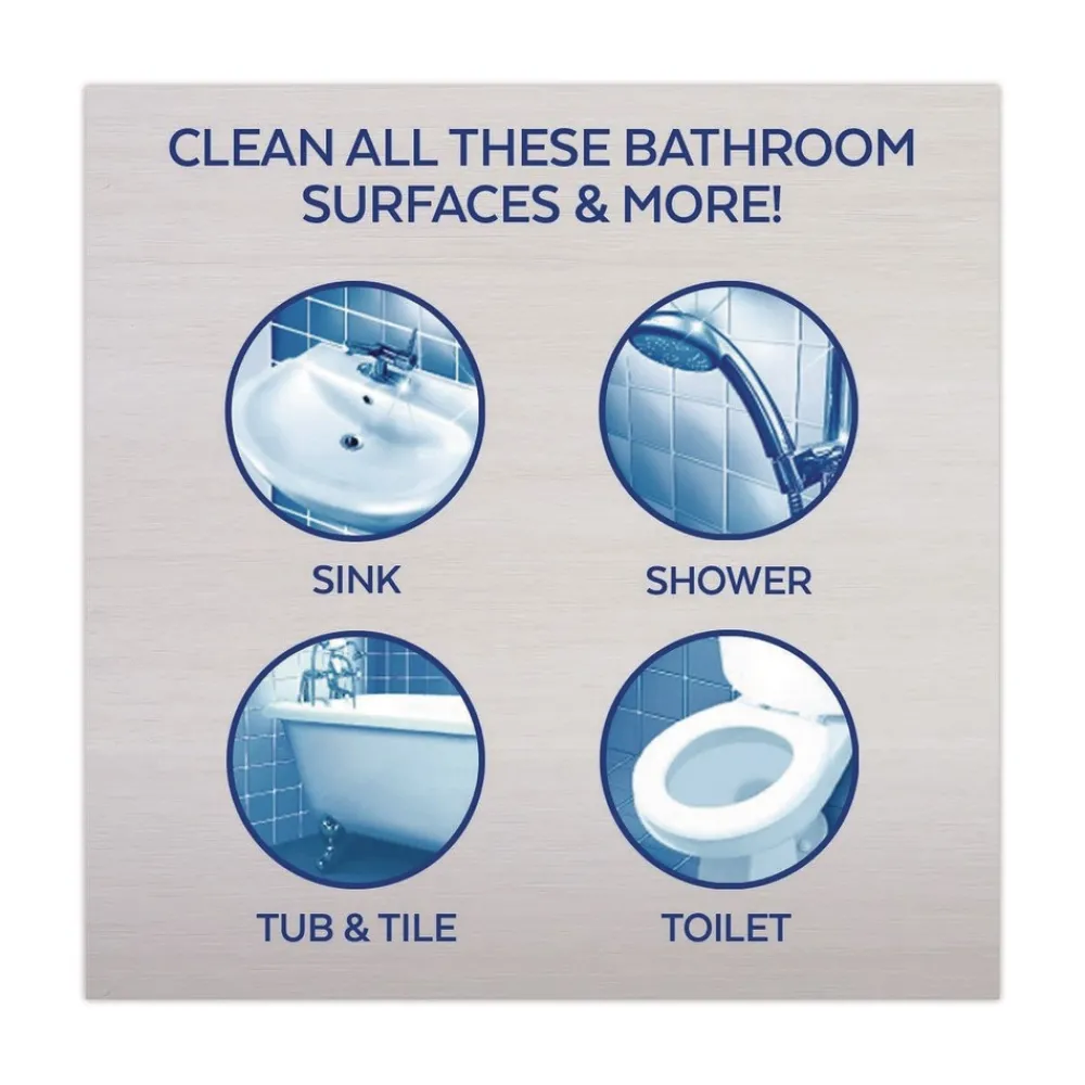 Lysol Brand Disinfectant Bathroom cleaner trigger cleans to a brilliant shine. Tackles tough cleaning challenges like lime scale and soap scum. Wipes away dirt and grime with little or no scrubbing. Kills 99.9% of viruses and bacteria when used as directed. Leaves your bathroom smelling clean and fresh. For use on shower doors, tubs, glazed tile, vanity tops, sinks and chrome fixtures.