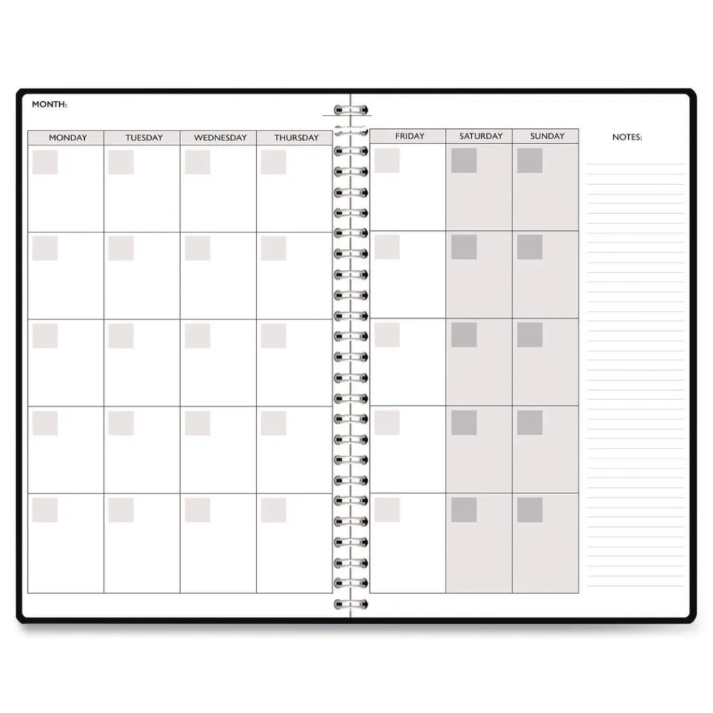 This non-dated weekly and monthly planner is ideal for uninterrupted easy planning. Both monthly and weekly two-page spread non-dated sections are to create your own planner dates. There is a large notes section to keep you organized and motivated. Also includes class schedule and note pages. The planner is spiral boundand features a two-piece cover that is waterproof, tear-proof and weather-resistant to withstand the daily use throughout the year. Made entirely of recycled materials.